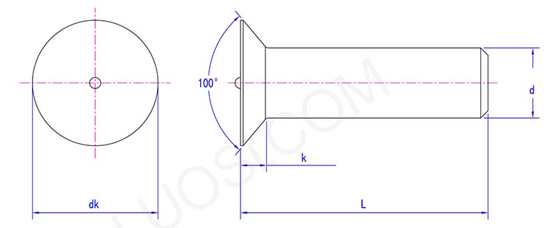 100° பிளாட் ஹெட் ஸ்டுட்களின் ஒரு முனை 100 டிகிரி பிளாட் ஹெட் ஆகும், மறுமுனையில் நூல்கள் இருக்கும். பிளாட் ஹெட், அதனுடன் தொடர்புடைய கவுண்டர்சங்க் துளைகளைக் கொண்ட கூறுகளுடன் இறுக்கமாகப் பொருத்துவதற்கு உதவுகிறது. அதன் நூல் விவரக்குறிப்புகள் சிறிய M3 அளவு முதல் பெரிய M16 அளவு வரை பல உள்ளன.