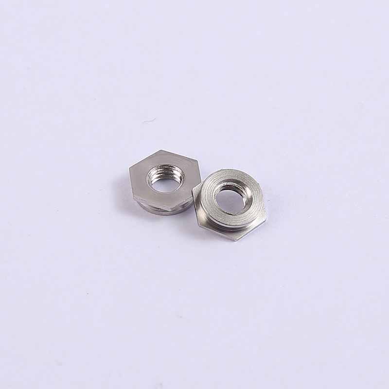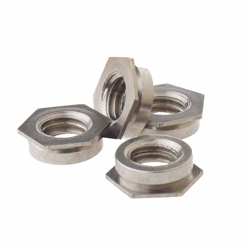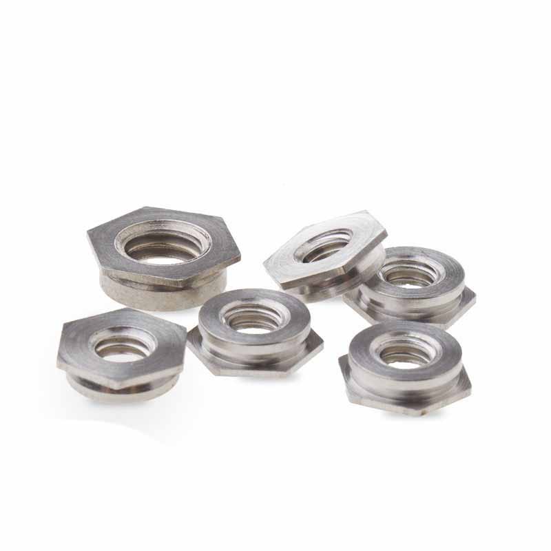300 சீரிஸ் எஃகு அன் செருகு நட்டு பாகங்கள் A2/AISI 304 அல்லது A4/AISI 316 எஃகு ஆகியவற்றிலிருந்து தயாரிக்கப்படுகின்றன. HRC 28-35 ஐச் சுற்றி ஒரு கடினத்தன்மை நிலையை அடைய அவை சூடாகவும் குளிராகவும் (தணிக்கவும் மென்மையாகவும்) உள்ளன. இந்த வெப்ப சிகிச்சையானது உலோக கட்டமைப்பை அடர்த்தியாக ஆக்குகிறது, இது 700 MPa ஐ கடந்த வலிமையைத் தள்ளுகிறது. முக்கியமாக, இது துருப்பிடிக்காத எஃகு இயற்கையான திறனை பாதிக்காது.