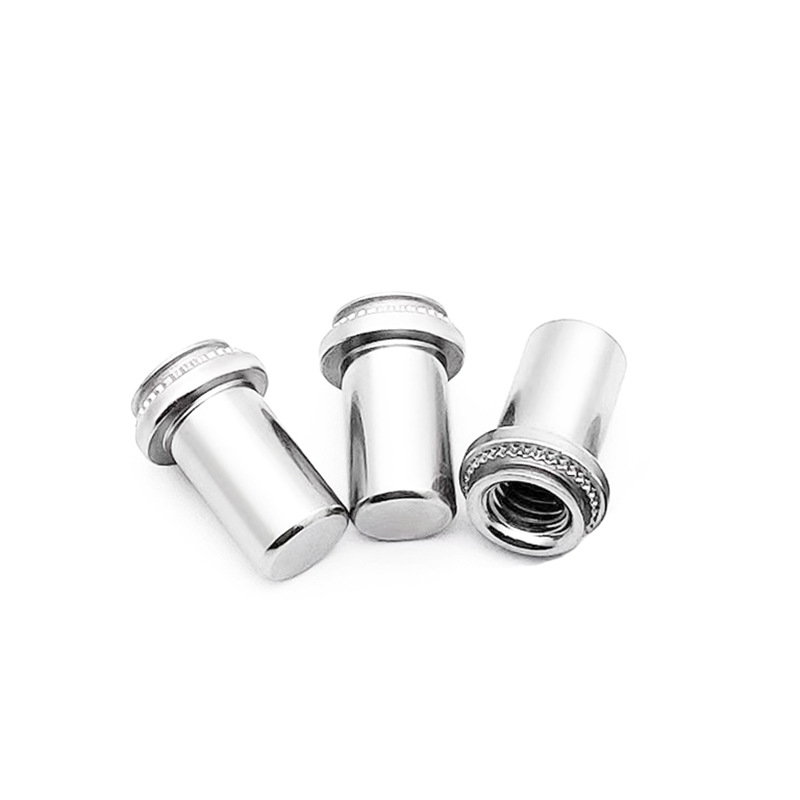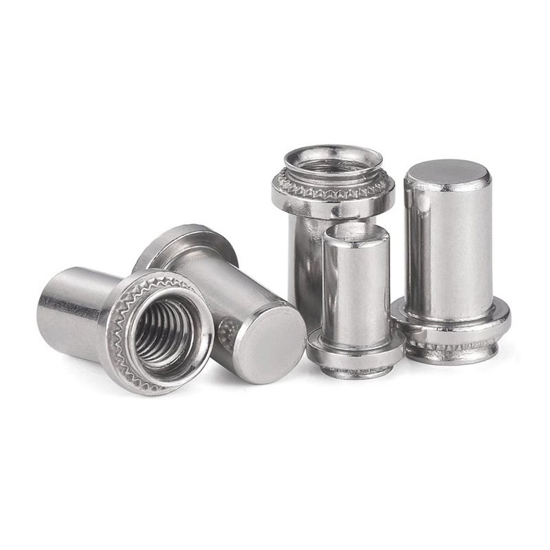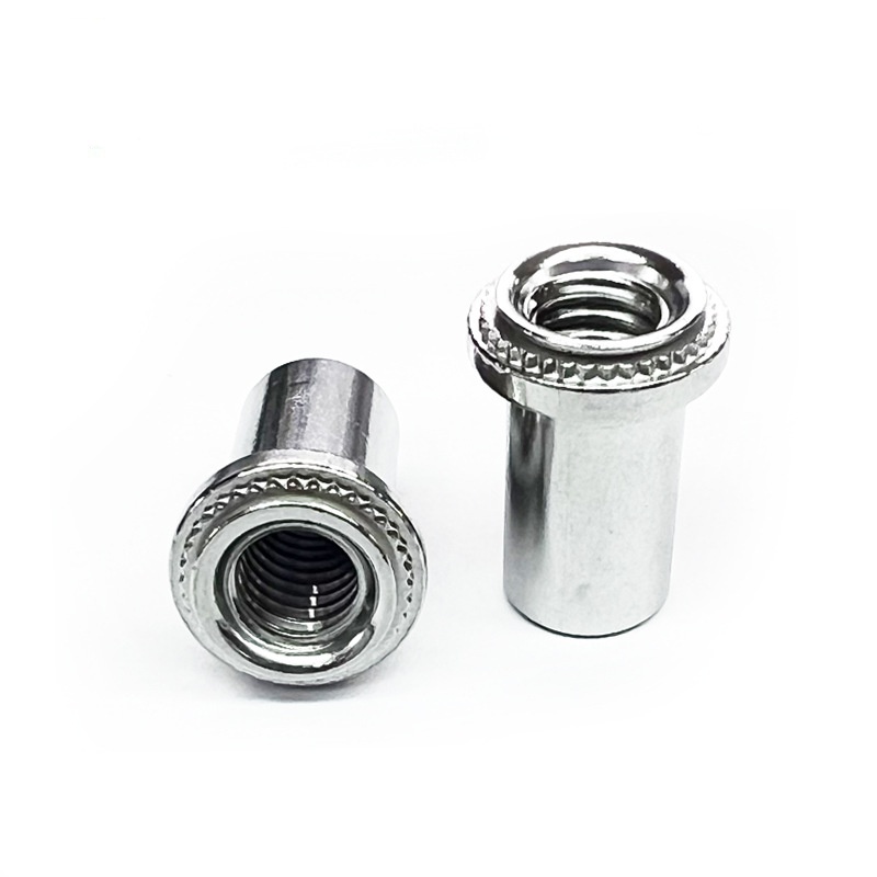 கார்பன் ஸ்டீல் சீலிங் க்ளோக்கிங் நட்டு நிறுவ, உங்களுக்கு ஒரு சிறப்பு கிளின்ச் கருவி மற்றும் டை செட் தேவை, இது நட்டின் அளவுடன் சரியாக பொருந்துகிறது. முதலில், தாள் உலோகத்தில் நட்டு ஒரு முன் துளைக்குள் வைக்கவும். பின்னர் கருவி கட்டுப்படுத்தப்பட்ட அழுத்தத்தைப் பயன்படுத்துகிறது, இது நட்டின் பைலட் மற்றும் முழங்காலில் சுற்றியுள்ள உலோகத்தில் மூழ்க வைக்கிறது. இந்த குளிர் உருவாக்கும் செயல்முறை துருப்பிடிக்காத எஃகு கொட்டையை நன்மைக்காக பூட்டுகிறது, அதே நேரத்தில், இது பேனலுக்கு எதிராக உள்ளமைக்கப்பட்ட சீல் வாஷரை சறுக்குகிறது. இந்த கொட்டைகளை தனித்துவமாக்கும் கசிவு-ஆதார முத்திரையை இது உருவாக்குகிறது.