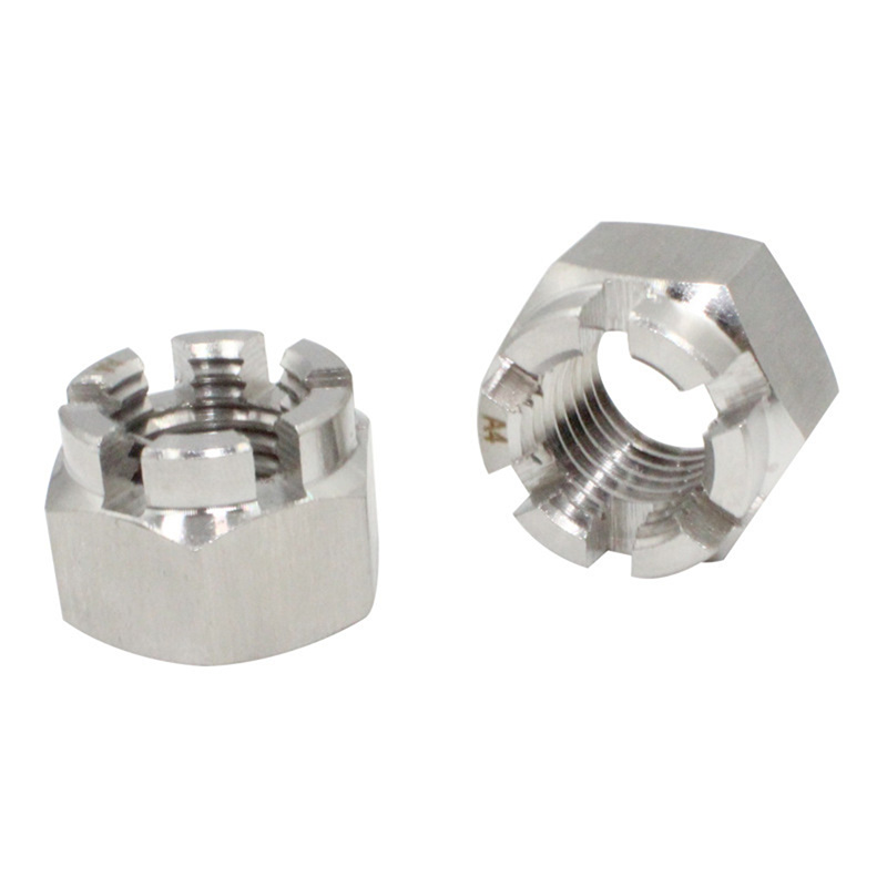 குவிமாடம் பகுதி பல இடங்களைக் கொண்டுள்ளது (பொதுவாக ஆறு), அவை சமமாக விநியோகிக்கப்பட்டு நட்டின் அச்சில் நேராக நீட்டப்படுகின்றன. இந்த இடங்கள் துல்லியமாக இயந்திரமயமானவை மற்றும் நிலையான திறந்த ஊசிகளை சரியாக பொருத்த முடியும். இந்த துளையிடப்பட்ட சுற்று தலை நட்டின் வடிவமைப்பு நடைமுறை மற்றும் பாதுகாப்பு சார்ந்ததாகும்: நீங்கள் நட்டு இறுக்கியதும், அதை அந்த இடத்தில் சரி செய்ய முடியும், இதனால் அதிர்வு அல்லது பிற சக்திகள் காரணமாக அது போல்ட்டிலிருந்து விழுவதைத் தடுக்கிறது.