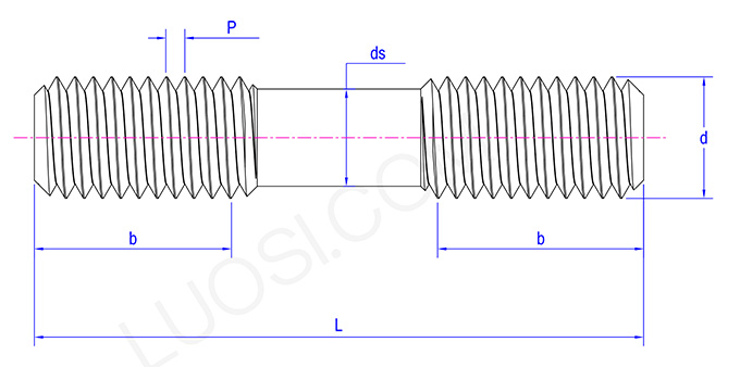 ஒட்டுமொத்தமாக நீட்டிக்கப்பட்ட சம நீள இரட்டை முடிவு ஸ்டட் என்பது இரண்டு முனைகளிலும் சம நீள நூல்களைக் கொண்ட மெல்லிய உலோகக் கம்பி, இந்த நூல்கள் இரு முனைகளிலும் இயங்குகின்றன. நடுத்தர பகுதி பொதுவாக ஒரு மென்மையான மற்றும் வெற்று தடி. உண்மையான தேவைகளுக்கு ஏற்ப நீளத்தை தனிப்பயனாக்கலாம்.