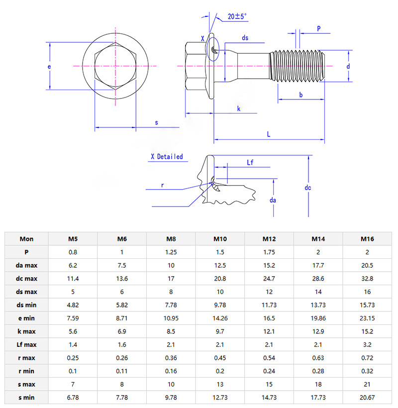 நெறிப்படுத்தப்பட்ட ஹெக்ஸலோபுலர் ஹெட் ஃபிளாஞ்ச் போல்ட்