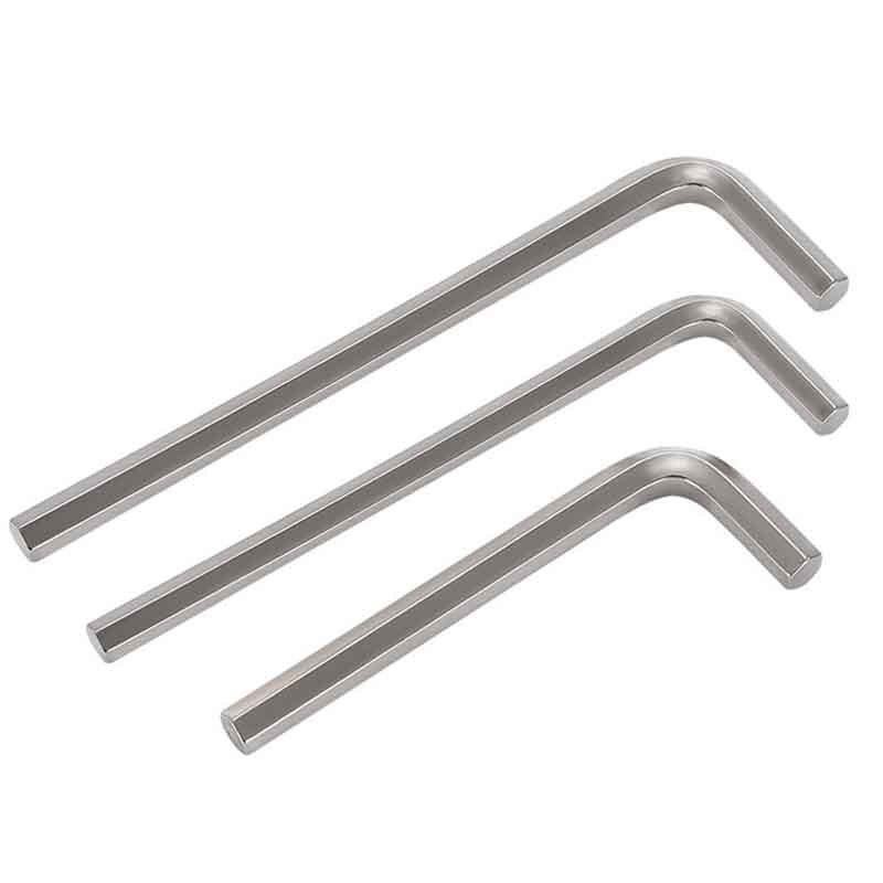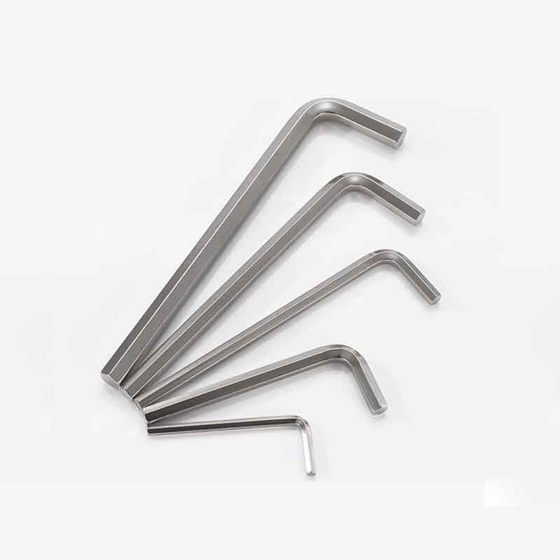 நல்ல-தரமான அறுகோண விசைகள் வலுவான அலாய் கருவி எஃகு, பொதுவாக குரோம் வெனடியம் (சிஆர்-வி) அல்லது குரோமியம் மாலிப்டினம் (சிஆர்-எம்ஓ) ஆகியவற்றிலிருந்து தயாரிக்கப்படுகின்றன. கடினத்தன்மை மற்றும் வலிமையின் நல்ல சமநிலையைப் பெறுவதற்காக அவை இந்த பொருட்களை வெப்பப்படுத்துகின்றன. அறுகோண விளிம்பு மற்றும் வழிகாட்டி நுனியில் அதிக கடினத்தன்மை உள்ளது (HRC 50-60 பற்றி) மற்றும் அணிய எளிதானது அல்ல, மேலும் முழு கருவியும் முறுக்குதல் அல்லது உடைக்காமல் போதுமான முறுக்குவிசை தாங்கும் அளவுக்கு கடினமாக உள்ளது. இது கடுமையான சுற்றுச்சூழல் நிலைமைகள் மற்றும் அடிக்கடி பயன்பாட்டின் கீழ் எளிதில் சேதமடையாது, மேலும் நீண்ட காலத்திற்கு பயன்படுத்தலாம் மற்றும் ஒப்பீட்டளவில் நீடித்ததாக இருக்கும்.