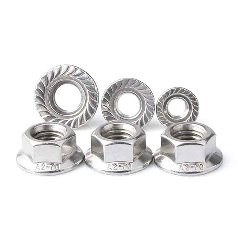 ஃபிளேன்ஜின் அடிப்பகுதியில் சிறிய சீர்கேடுகள் உள்ளன. இவை அதிர்வுகளை நன்றாக எதிர்க்க உதவுகின்றன, எனவே நகரும் சுமைகள் இருக்கும்போது அவை தளர்ந்துவிடாது. தனி வாஷருடன் வழக்கமான நட்டைப் பயன்படுத்துவதை ஒப்பிடும்போது இது ஒரு பெரிய பிளஸ்.