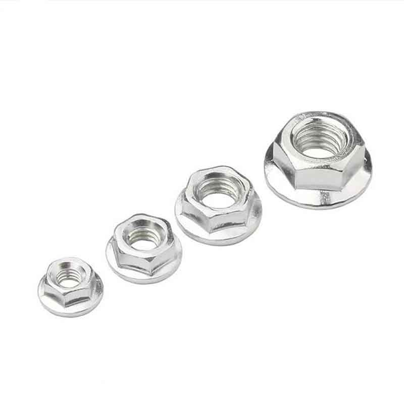 விளிம்புடன் கூடிய உயர் செயல்திறன் கொண்ட அறுகோண கொட்டைகள் பொதுவான சர்வதேச தரங்களைப் பின்பற்றுகின்றன, அவை அவற்றின் சரியான அளவுகள் மற்றும் இயந்திர பண்புகளை அமைக்கின்றன. முக்கிய தரநிலைகளில் ISO 4161 (DIN 6926 ஆகப் பயன்படுத்தப்பட்டது) மற்றும் ASME B18.2.2 ஆகியவை அடங்கும். அடுக்குகள் முழுவதும் ஹெக்ஸ் அகலம் (AF), மொத்த உயரம், விளிம்பு விட்டம் மற்றும் நூல் அளவு/சுருதி (M12x1.75 போன்றவை) போன்றவற்றை அளவுகள் உள்ளடக்கும். விளிம்பு விட்டம் ஹெக்ஸ் பகுதியை விட பெரியது, அதனால்தான் இது சுமைகளை பரப்ப உதவுகிறது. அவை பொதுவான மெட்ரிக் மற்றும் இம்பீரியல் நூல் அளவுகளில் வருகின்றன, பொதுவாக M5/M6 முதல் M36 வரை அல்லது 1/4" முதல் 1.5" வரை, எனவே அவை வெவ்வேறு பொறியியல் தேவைகளுக்கு வேலை செய்கின்றன.