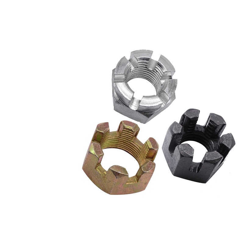 ஸ்லாட் கொண்ட உயர் முறுக்கு கிரீடம் நட்டு என்பது முக்கியமான வேலைகளில் பயன்படுத்தப்படும் ஒரு சிறப்பு ஃபாஸ்டென்சராகும், அங்கு அதிர்வுகளுடன் கூட அல்லது அது திருப்ப முயற்சித்தால் அது பூட்டப்பட்டிருப்பதை உறுதிசெய்ய வேண்டும். இது ஒரு வழக்கமான ஹெக்ஸ் நட்டு போல் தெரிகிறது, ஆனால் மேலே ஒரு உருளை கிரீடம் பகுதி உள்ளது. அந்த ஸ்லாட் ஒரு கோட்டர் முள் அல்லது பாதுகாப்பு கம்பியைப் பயன்படுத்தி இறுக்கமாக பூட்ட அனுமதிக்கிறது. வழக்கமான கொட்டைகள் தளர்வாக வரும்போது இந்த கொட்டைகள் இருக்கும், எனவே அவை கடுமையான இயந்திர அமைப்புகளுக்கு மிகவும் அவசியமானவை -குறிப்பாக விண்வெளி, கார் தயாரித்தல் மற்றும் கனரக இயந்திரங்கள், பாதுகாப்பு உண்மையில் முக்கியமானது.