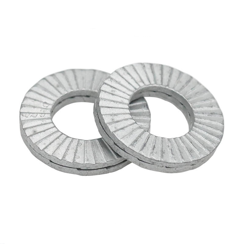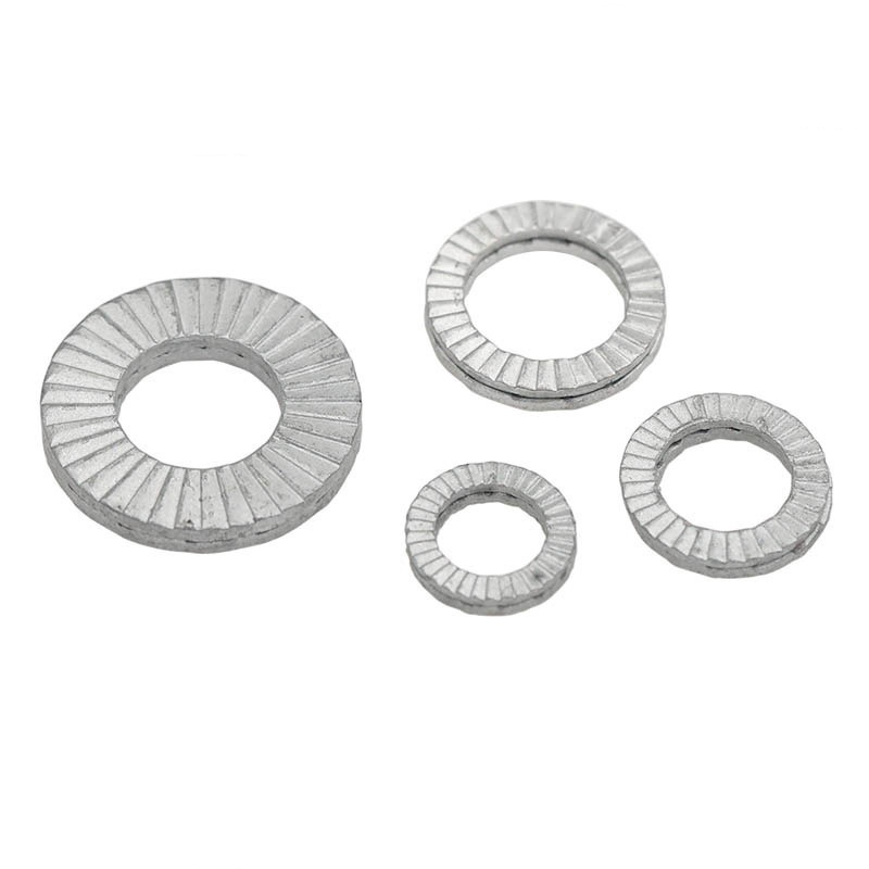 எங்கள் வழக்கமான இரண்டு மடங்கு சுய பூட்டுதல் துவைப்பிகள் நிரந்தரமாக பூட்டுவது துத்தநாக பூச்சுடன் கார்பன் எஃகு மூலம் தயாரிக்கப்படுகிறது. துருவை சிறப்பாக எதிர்க்க உங்களுக்குத் தேவைப்பட்டால், எங்களுக்கு A2/A4 (304/316) எஃகு போன்ற விருப்பங்கள் உள்ளன. ஜியோமெட் போன்ற கூடுதல் பூச்சுகளும் உள்ளன, இது சுற்றுச்சூழலுக்கு சிறந்தது, டாகாக்ரோமெட், நீங்கள் விரும்பினால் PTFE முத்திரைகள் பெறலாம். நிலைமைகள் கடினமானதாக இருக்கும்போது கூட துவைப்பிகள் இன்னும் பொருட்களை பூட்டுவதை உறுதிசெய்யும் பொருட்களை நாங்கள் தேர்வு செய்கிறோம்.