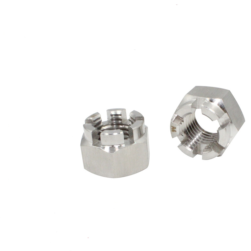ப: ஸ்லாட்டுடன் கிரீடம் நட்டு வெவ்வேறு பொருட்களில் வந்துள்ளது - எனவே அவை வெவ்வேறு சுற்றுச்சூழல் தேவைகளுக்கும் வலிமை தேவைகளுக்கும் பொருந்தும். பொருட்களைத் தேர்ந்தெடுக்கும்போது, நாங்கள் வழக்கமாக தரம் 8 எஃகு மற்றும் எஃகு (SS304 அல்லது SS316 போன்றவை) தேர்வு செய்கிறோம். பித்தளை மிகவும் பொதுவாக பயன்படுத்தப்படுகிறது.