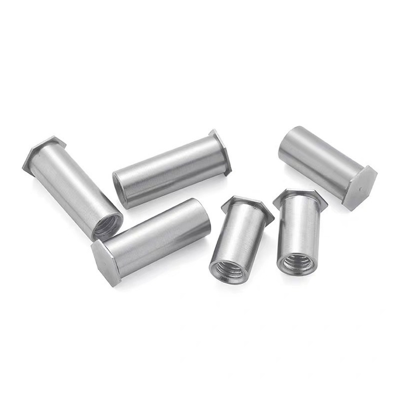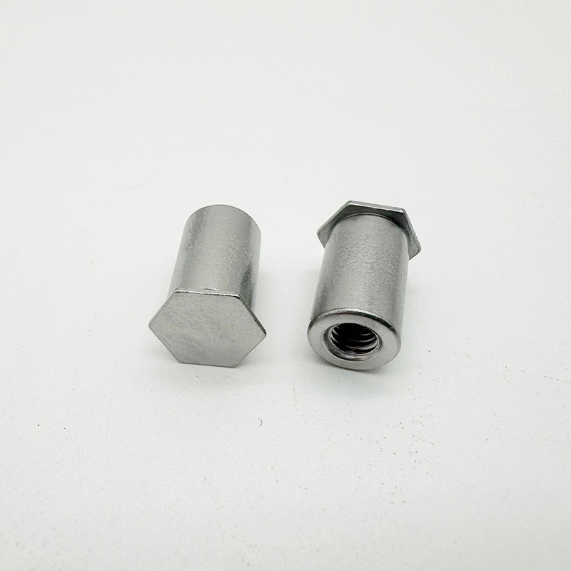 சுய கிளினிங் குருட்டு திரிக்கப்பட்ட நிலைப்பாட்டை நிறுவ, உங்களுக்கு ஒரு ரிவெட்டிங் கருவி தேவை. முதலில், பொருளில் ஒரு துளை துளைக்கவும், பின்னர் நட்டின் ஷாங்கை துளைக்குள் ஒட்டவும். கருவி நட்டு வழியாக ஒரு மாண்ட்ரலை இழுக்கிறது, இது பொருளின் பின்புறத்தில் ஷாங்க் வீக்கத்தை ஏற்படுத்துகிறது. இது ஒரு நிரந்தர, அதிர்வு-தடுப்பு திரிக்கப்பட்ட ஃபாஸ்டென்சரை உருவாக்குகிறது. நட்டின் அளவுடன் பொருந்தக்கூடிய ஒரு நிலையான நியூமேடிக் அல்லது ஹைட்ராலிக் ரிவெட் நட்டு கருவியைப் பயன்படுத்துங்கள், மிகவும் நேரடியானது.
