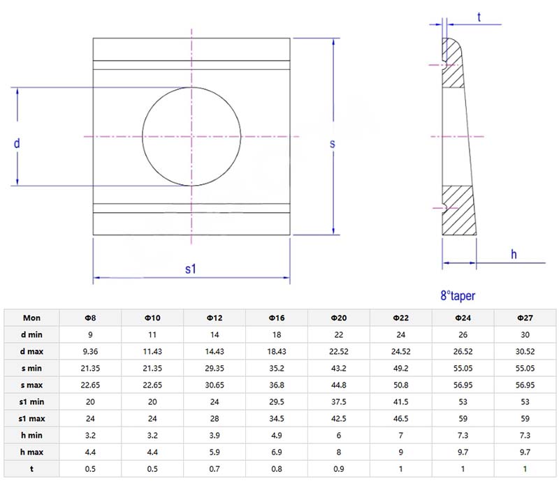 சதுர டேப்பர் வாஷர் என்பது ஒரு சதுர வடிவத்தின் நடுவில் ஒரு வட்ட துளை கொண்ட ஒரு இயந்திர பகுதியாகும், இது கொட்டைகள், போல்ட் அல்லது பிற இணைப்பிகளுடன் பயன்படுத்தப்படுகிறது. அரிப்பு எதிர்ப்பை அதிகரிக்கவும், எதிர்ப்பை அணியவும் ஒரு பாதுகாப்பு படத்தை உருவாக்க வாஷரின் மேற்பரப்பை பூசலாம். பூச்சு பொருள் தேர்ந்தெடுக்கப்படலாம். குறிப்பிட்ட பூச்சு பொருளைப் பற்றி அறிய Xiaoguo® தொழிற்சாலையைத் தொடர்பு கொண்டு உண்மையான சூழ்நிலைக்கு ஏற்ப அதைத் தனிப்பயனாக்கவும்.